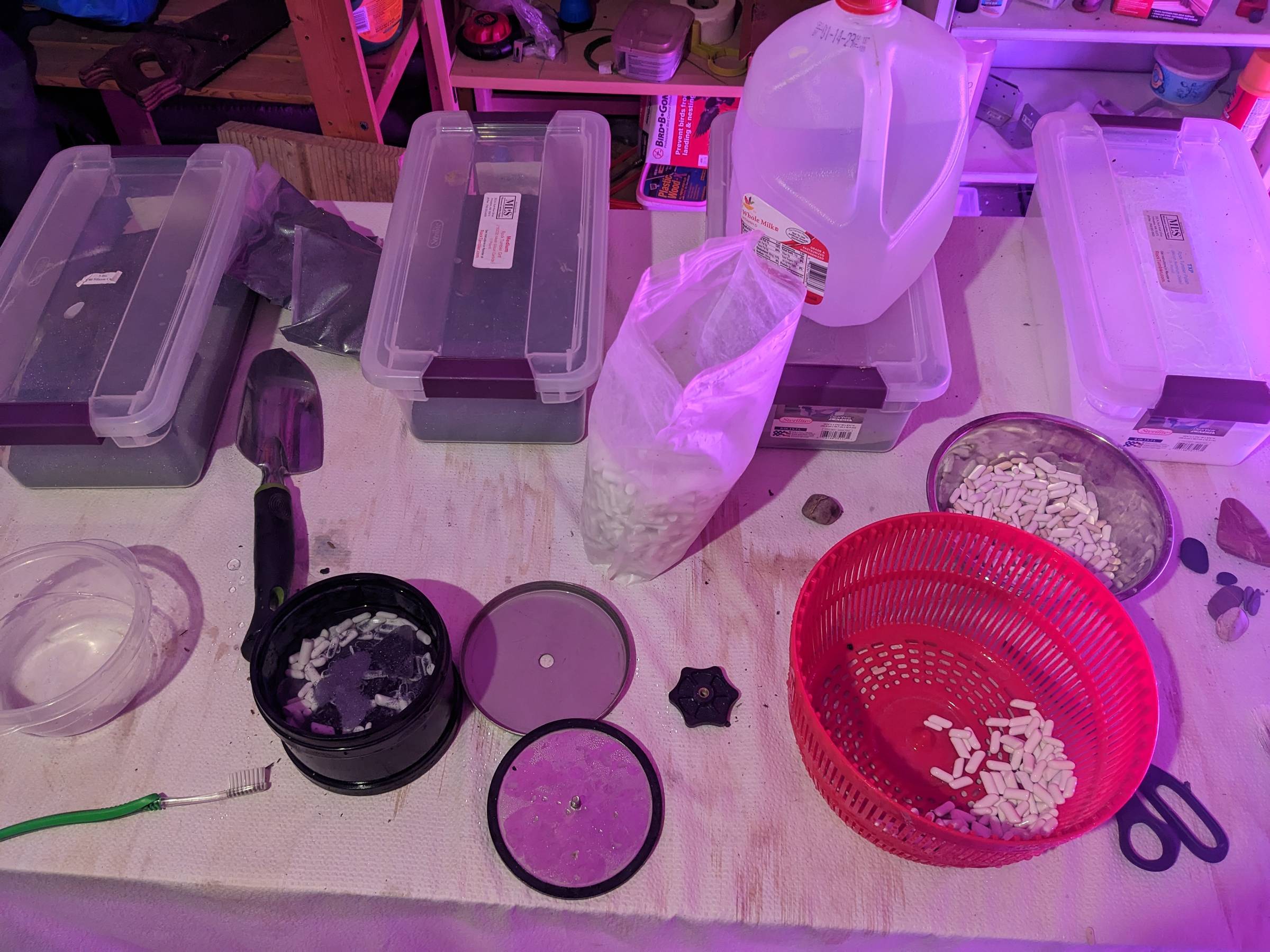 When I was digging up the photo at the top of this email from my archives, I realized that I don't share many pictures of my "setup" for my day-to-day work. In that vein, here's what my rock tumbling setup looks like in my basement: